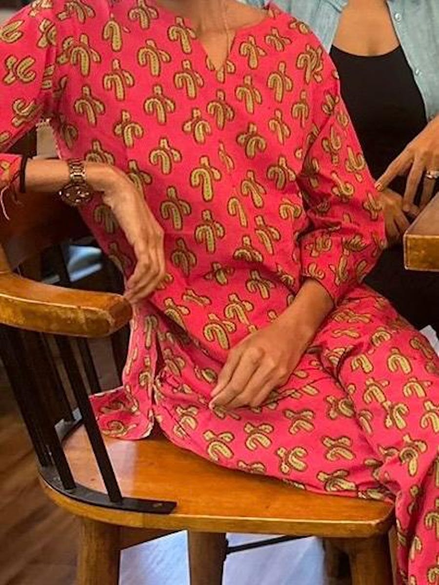 Coral Crush Hand-Block Cotton shirt Kaftan