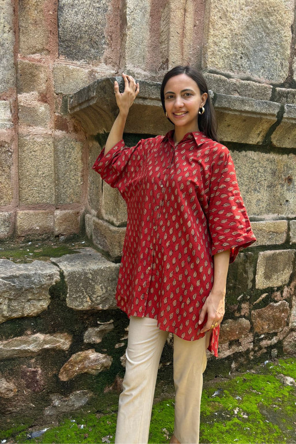 Coral Crush Hand-Block Cotton shirt Kaftan
