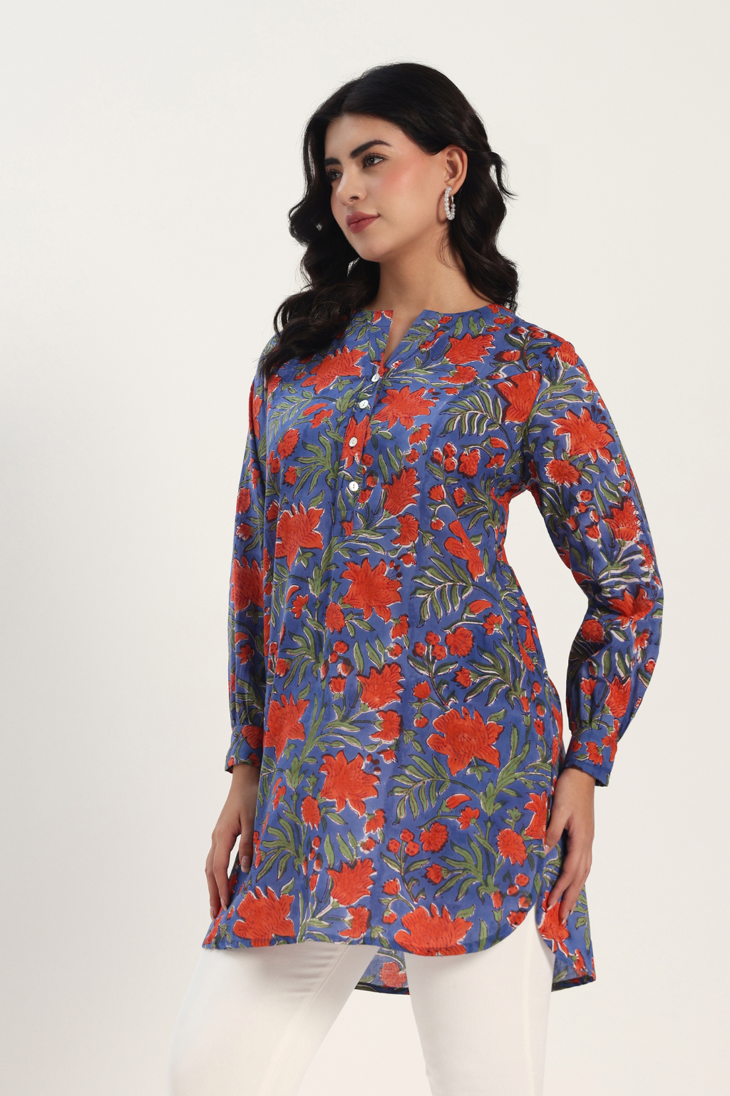 Blue Botanica Handblock Cotton Tunic