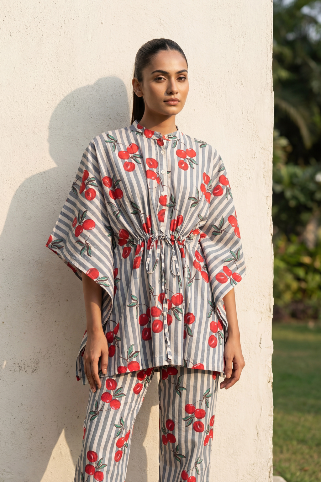 Cherry Stripe Kaftan Cotton Co Ord Set