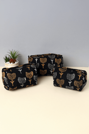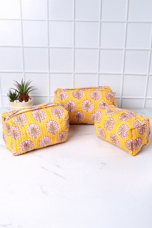 Multicolored Floral Bouquet Hand Block Printed Quilted Vanity Bag