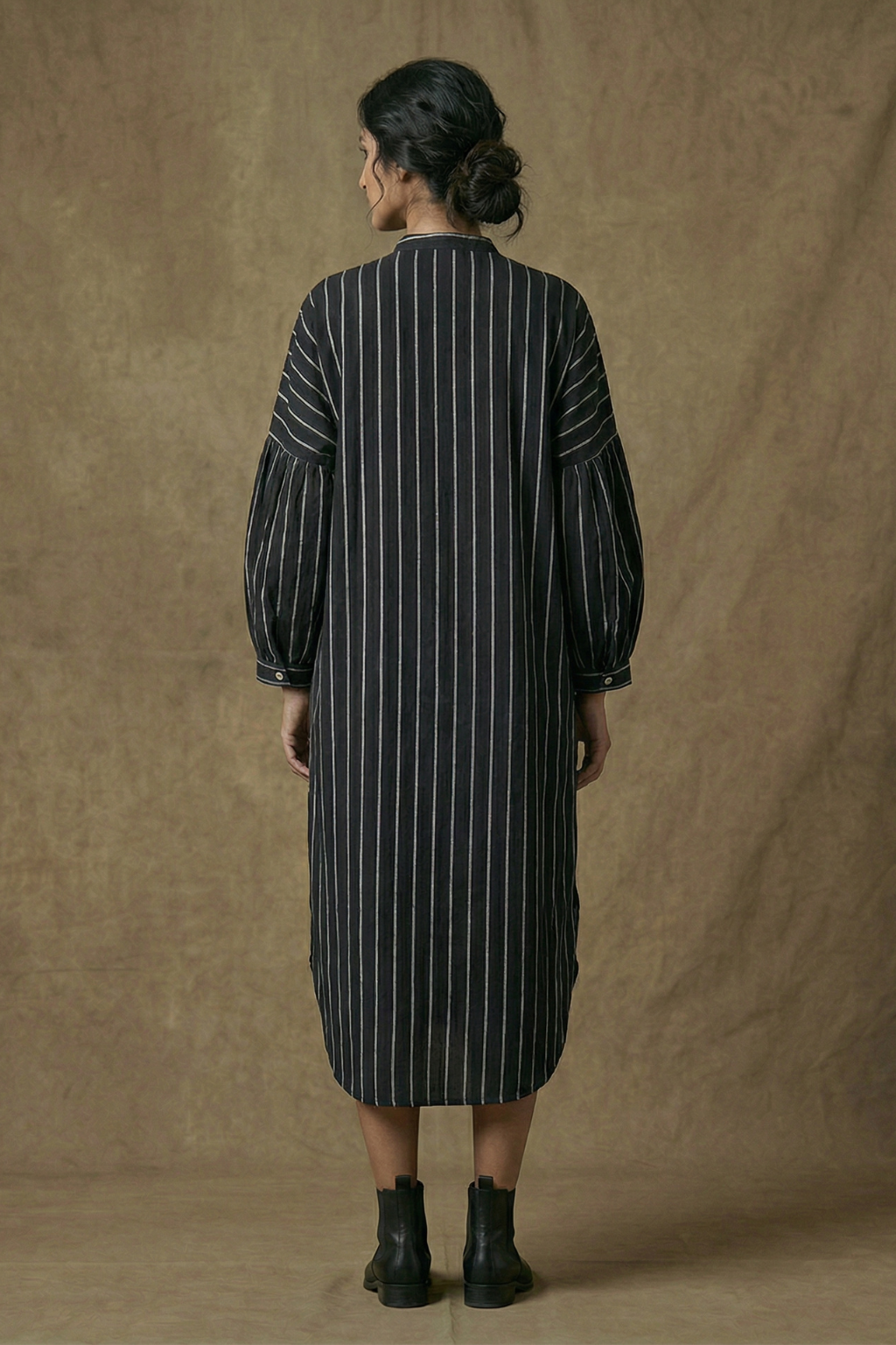 Crafted from soft, breathable cotton, this striped shirt dress is designed for effortless everyday comfort with a polished edge. The relaxed anti-fit silhouette drapes beautifully on the body, making it ideal for all-day wear and adaptable across life stages, including maternity. Featuring a classic button-down front, full-length sleeves, and a gently curved hemline, it balances structure with ease. Vertical stripes elongate the silhouette, while two functional pockets add everyday practicality. A timeless, versatile piece perfect for casual outings, workdays, or slow weekends.