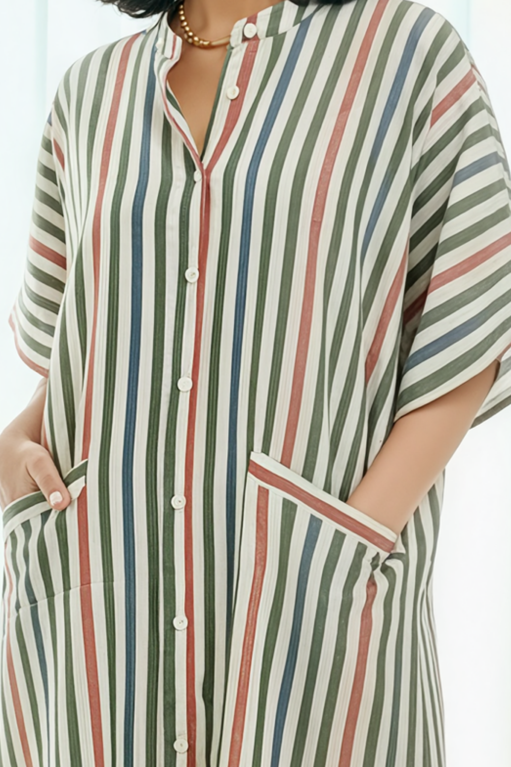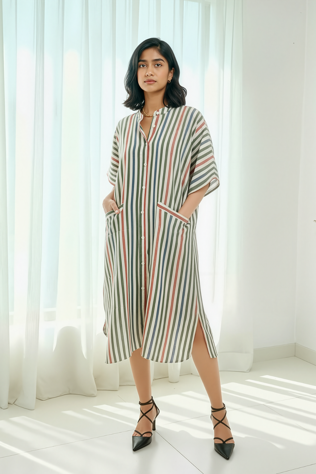 Multicolured Stripe Cotton Kaftan Shirt Dress