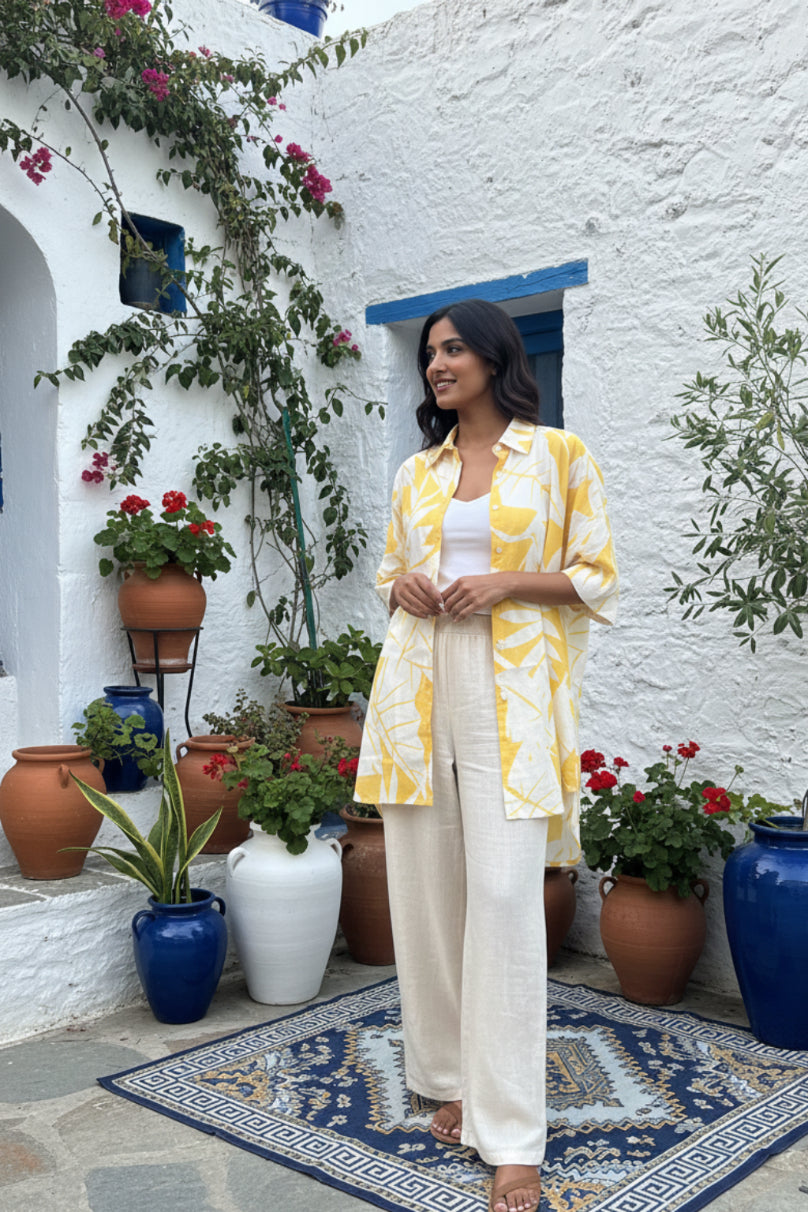 Crafted in soft, breathable fabrics and detailed with hand-done prints, each style moves with you — from lazy mornings to sunny escapes, from lounging to living out loud.