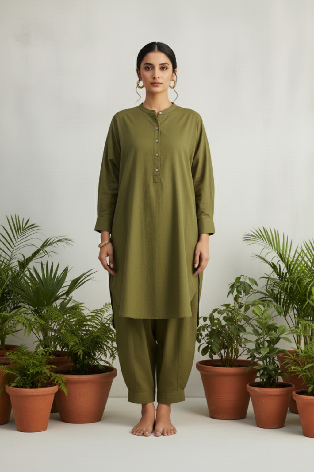 Samira Olive Cotton Kurta Set