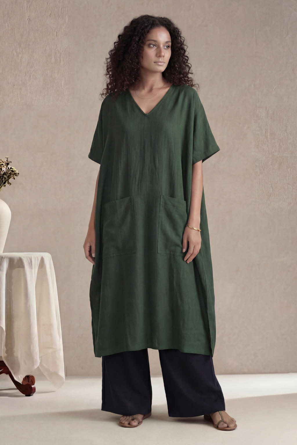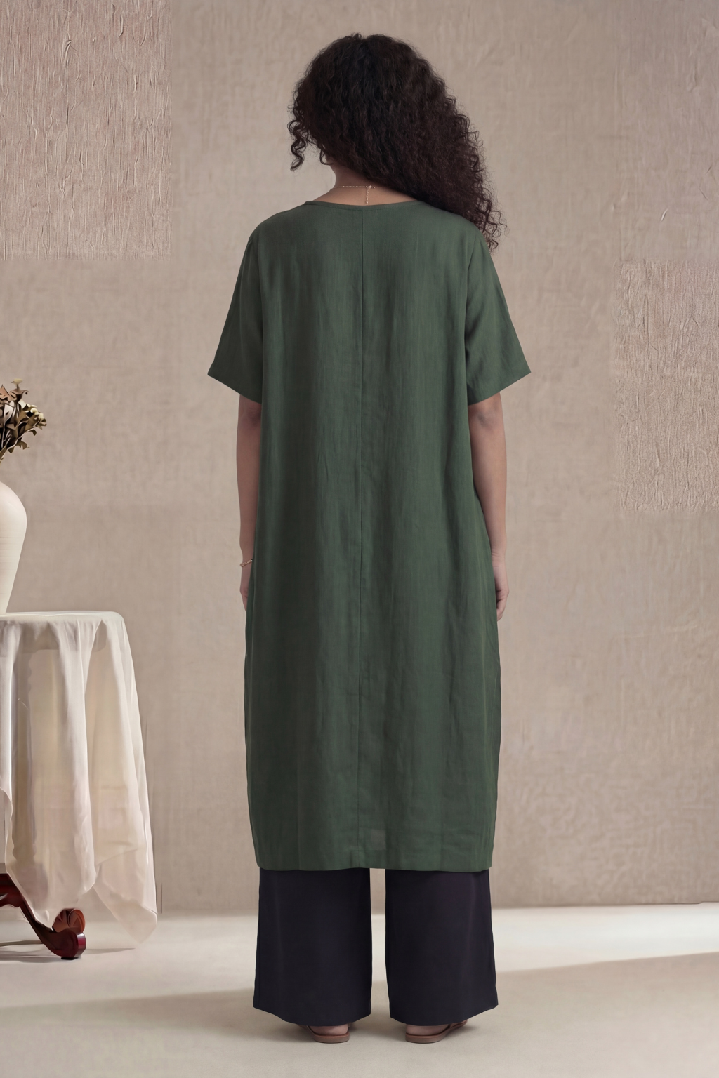 Versatile by nature, this kurta pairs seamlessly with pants, palazzos, or skirts, making it a wardrobe essential across seasons and occasions. The minimal neckline, soft structure, and airy fabric make it ideal for long hours, warm weather, and mindful dressing.